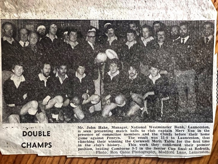 On 26 April 1983 the team travelled to the Recreation Ground at Redruth to take on Camborne for the Cornwall Challenge Cup. A large crowd of Launceston supporters greeted the team when they arrived. The ground was packed with a large contingent of voracious and noisy Launceston supporters for the eagerly awaited match between the two top sides in the Merit Table of that season. As expected it was a close encounter with Launceston holding our by 9 points to 7 points and with it the double of Merit Table and Challenge Cup emulating Camborne in the 1977/78 season. It might seem hard for people to grasp nowadays but the magnitude of the success achieved by Launceston in that season was such that it was the very first time a club located further up the county than Redruth had won either the newish Merit Table but more importantly the long established Challenge Cup.